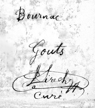 "Om 9 uur mis in Bournac. Eigenaardig om te zien. De vrouwen die elk een weekblad ontvangen, zitten de ganse mis op hun achterste gestadig te lezen, juist zoals bij ons in een kerkboek gelezen wordt. De kosterin met hare grote strooien hoed heeft nog de meeste praat. En de misdienaars spelen of er bij de mis een pantomime hoort. Wat is het geloof in Frankrijk toch laag gevallen.